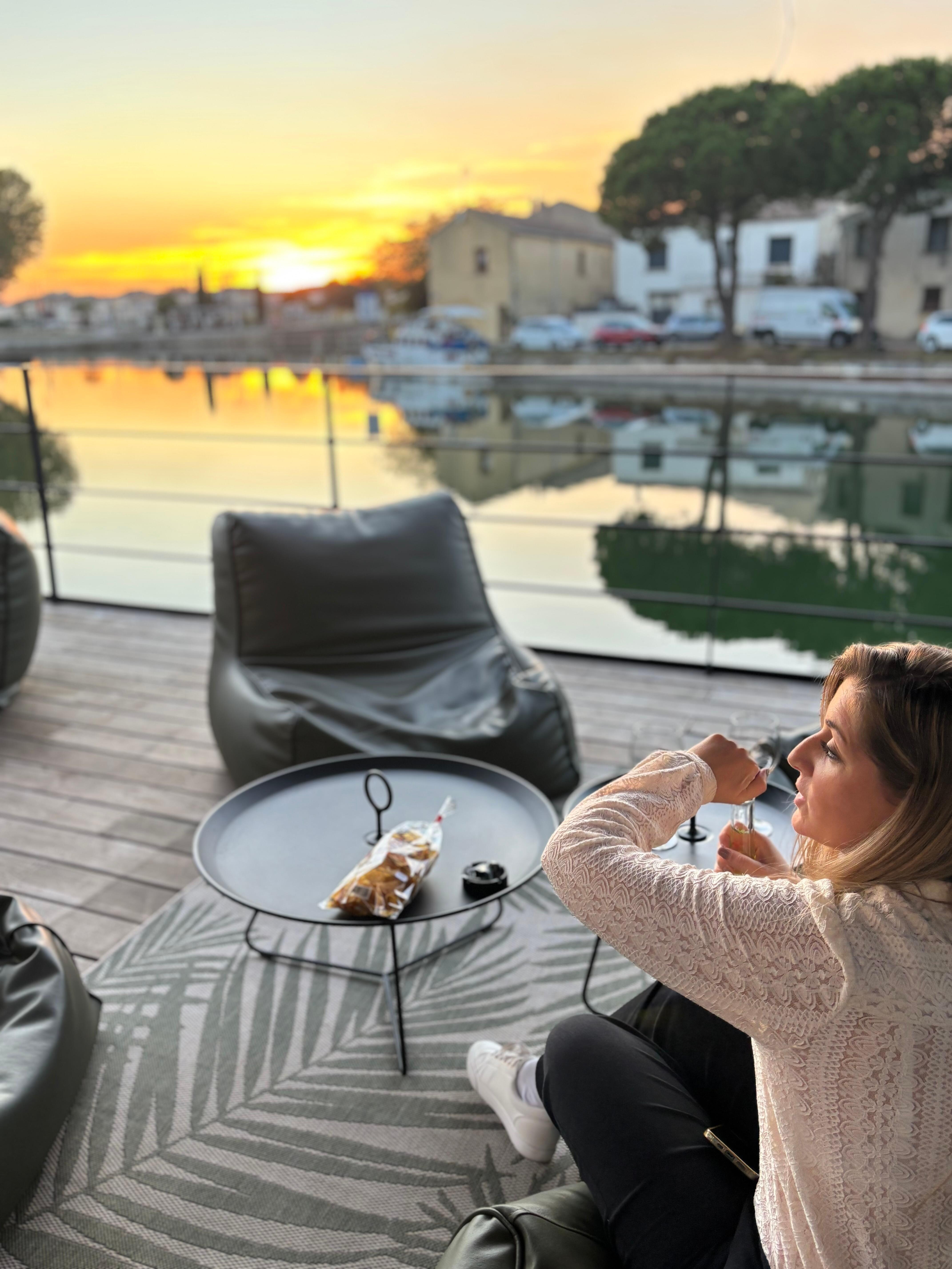 Univers original avec vue sur le canal Et soleil couchant . Une très belle expérience à vivre