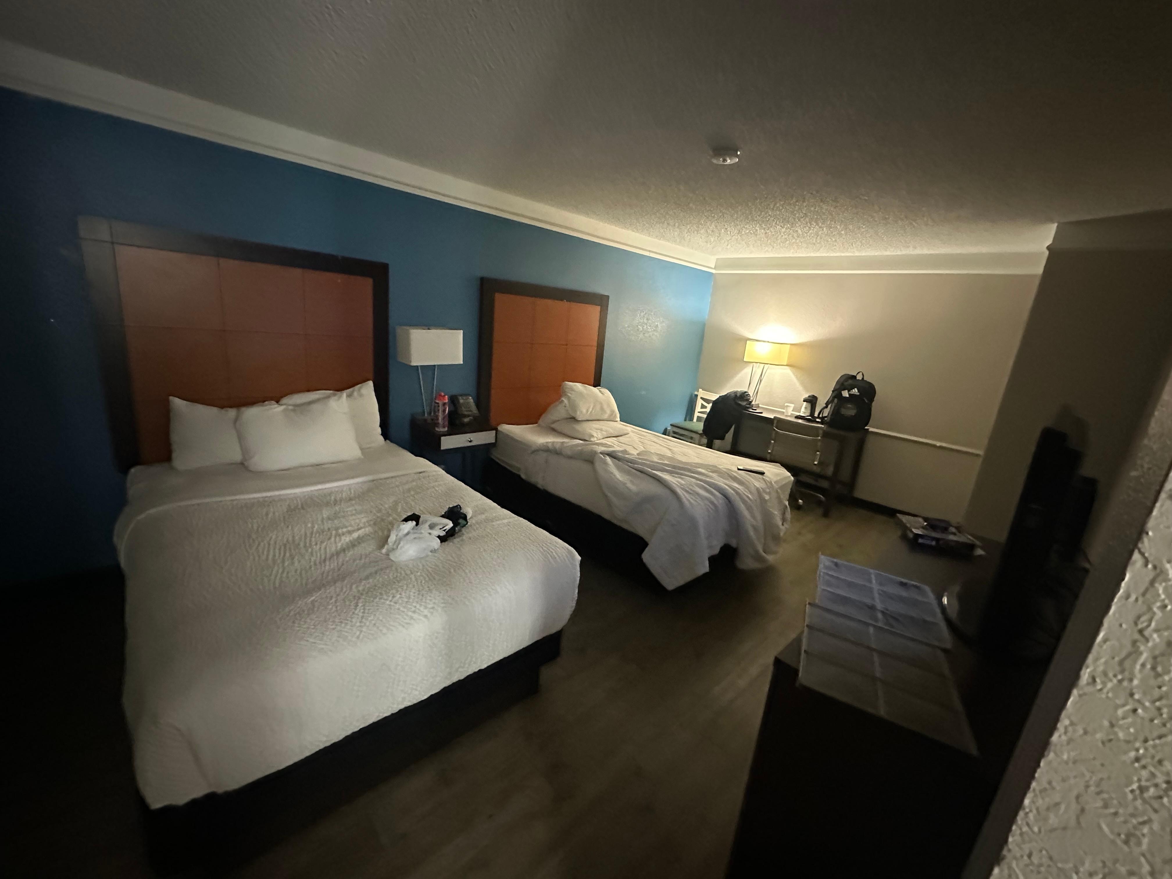 Der Außenpool war zwar mit Wasser befüllt und die Technik lief sichtbar, aber dennoch war er abgeschlossen und mit „out of order“ beschildert. Genau deswegen hatten wir das Hotel ausgewählt – nach einer langen Autofahrt wollten wir entspannen und schwimmen. Eine Vorabinfo dazu gab es nicht – weder über Expedia noch vom Hotel direkt.