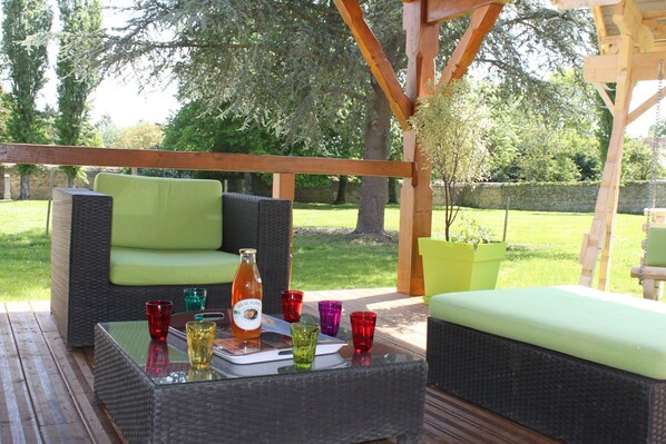 Einfamilienhaus auf großem abgeschlossenem Grundstück. Erdgeschoss: 1 Wohnzimmer mit Klavier, 1 Lounge-Bibliothek, 1 großes Wohnzimmer mit Esszimmer und TV-Lounge, Stereoanlage und Kamin, Einbauküche, Waschsalon, Duschbad mit WC. 1. Stock: 4 Schlafzimmer, 2 angrenzende (3 160x200cm Betten und 4 90cm Betten), 3 Duschbäder. 2. Etage: Treppenabsatz mit TV-DVD-Lounge-Bereich und 1-Personen-Sauna, 2 Schlafzimmer (1 140 cm Bett und 2 90 cm Betten), 2 Duschbäder mit WC. Nebengebäude mit Tischtennis, Tischfußball und französischem Billard. Bettwäsche und Handtücher werden gestellt. WiFi-Internetverbindung, Safe, elektrisches Tor, Alarmanlage. 2 große Terrassen mit Gartenmöbeln, 2 umzäunte Parks, eine auf der Rückseite mit Grill und Spielen für Kinder (Rutsche, kleines Haus) und ein überdachter Innenhof mit Aufenthaltsraum.
