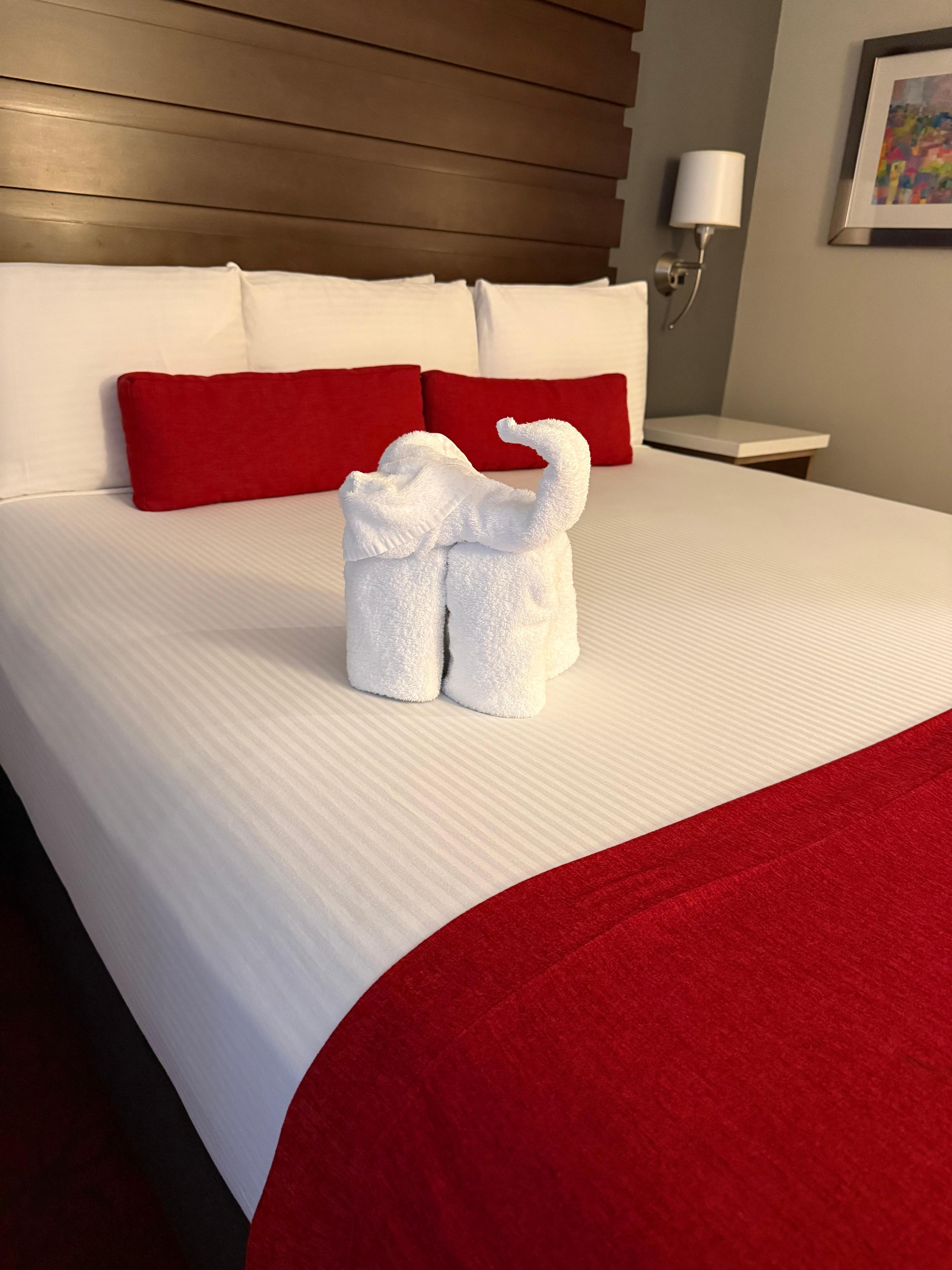 15 minute walk to the parks. Parking is $50/night. Excellent 3 night stay! The staff all over the property are so pleasant & friendly. Booked the king bed with the bunk beds, very clean and cozy. I was knocked out!! Loved the strong water pressure in the shower. Plenty of clean towels. Loved how the refrigerator was super cold! They actually turn over your room every day if you like, hard to find that these days. Enjoyed the complimentary breakfast: eddy’s, sausage, toasts, waffle station, biscuits, gravy, fruit, assorted juices, hot coffee, tea, cereal & oatmeal. Only drawback was there was no luggage rack to place our luggage on top. We had to unpack all of our clothes and place them on top of the desk.