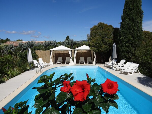 Das große Schwimmbad und die verschiedenen Terrassen sind von diesem großen Gebäude mit Charakter geschützt und ermöglichen es Ihnen, die Mittagssonne zu genießen und sich nach einem Tag voller Ausflüge oder sportlicher Aktivitäten in der Umgebung zu entspannen.