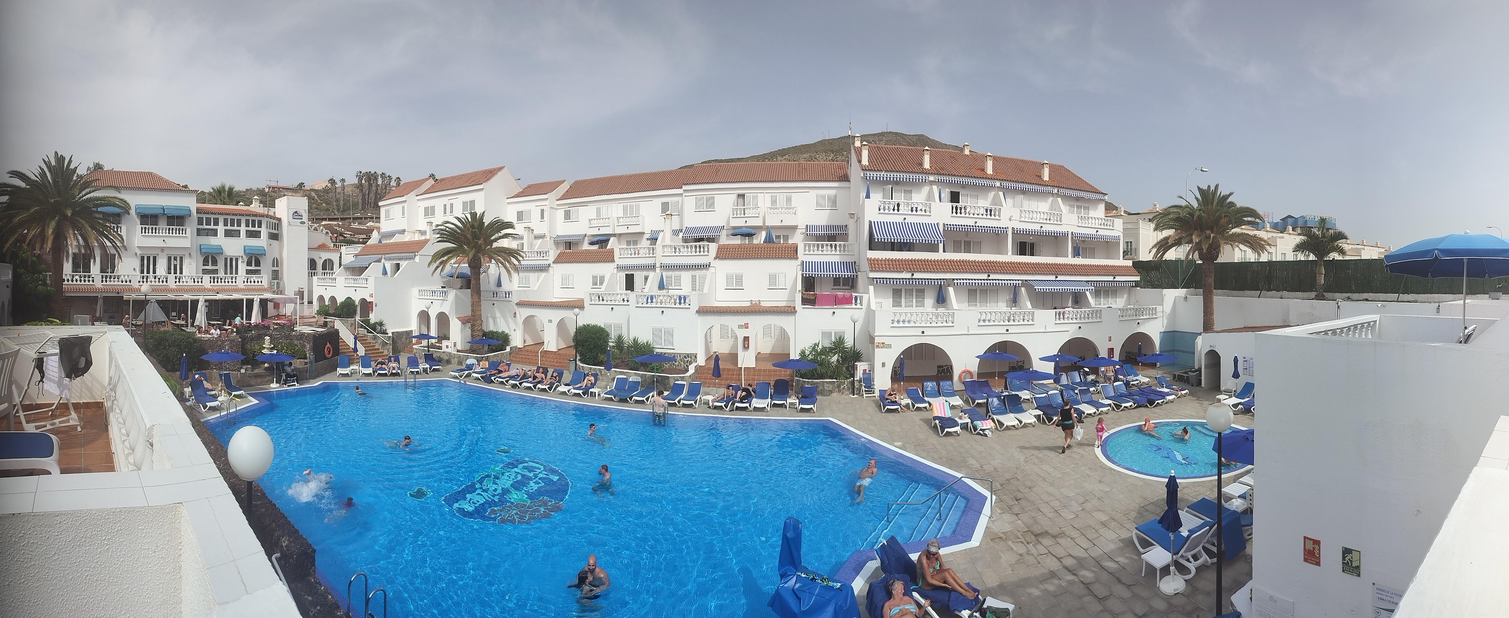 The pool is lovely and slightly heated which made a big difference and we always managed to get a sunbed.