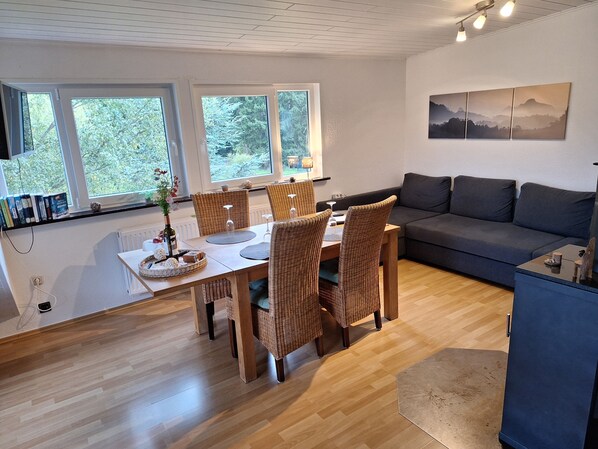 2 Schlafzimmer, Bettwäsche, Handtücher, WLAN, Smart-TV + Sat TV, Holzofen, geräumige Küche :-)