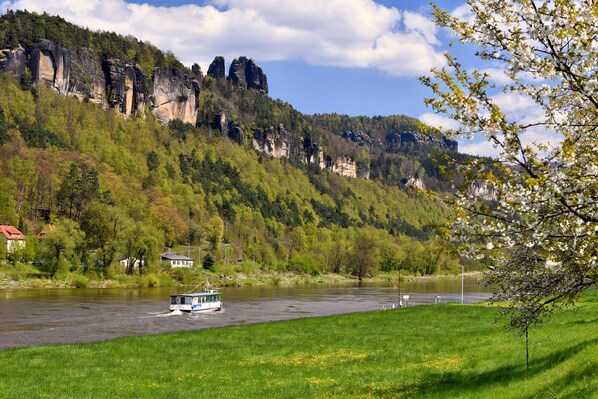 Dank der ausgezeichneten Lage am Fluss ist dieses Apartment nur wenige Schritte entfernt von: Elbsandsteingebirge und Fähre Postelwitz-Krippen. Ebenfalls höchstens 10 Minuten entfernt: Personenaufzug und Elbe. Bahnhof Krippen ist zu Fuß in 15 Minuten zu erreichen.