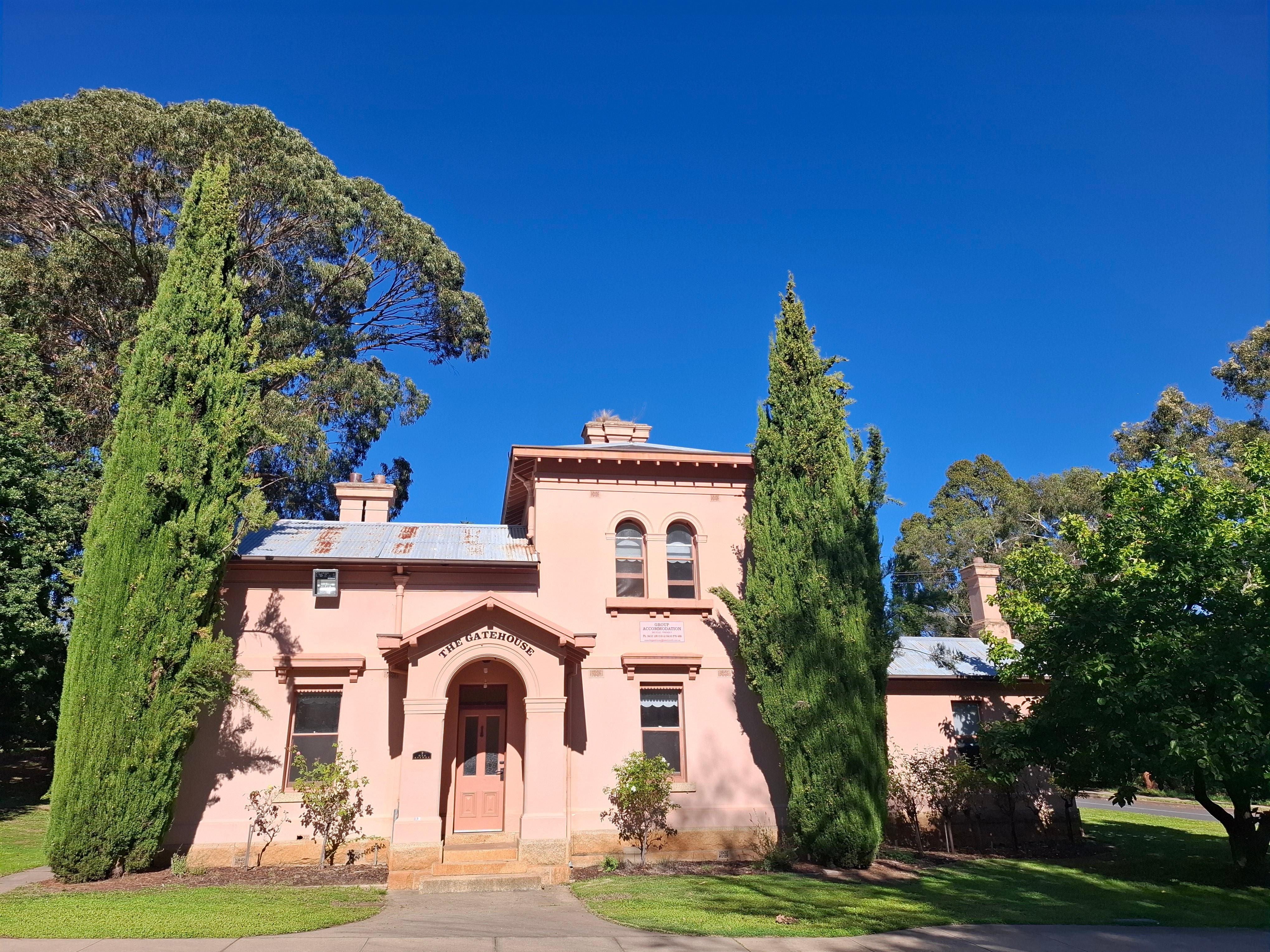 Das Torhaus ist eine bedeutende denkmalgeschützten Gebäude unter den Mayday Hills Gärten in Beechworth gesetzt. Es ist ein schönes Beispiel für ein zweistöckiges italienischen Architektur in den 1860er Jahren gebaut. Der Gatehouse befindet sich in einem malerischen und einer großen Parkanlage von reifen exotischen und einheimischen Bäumen und ist das erste Gebäude auf der schönen Eiche gesäumten Auffahrt am Eingang zum Mayday Hills.