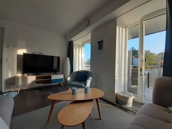 Cet appartement de Binz offre l'accès gratuit à Internet par Wi-Fi. Des bureaux et des chaises de bureau sont fournis.