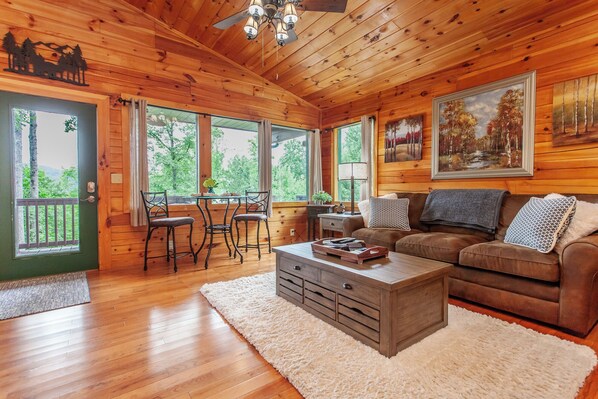 Diese Ferienhütte in Bryson City bietet eine Küche und einen Patio