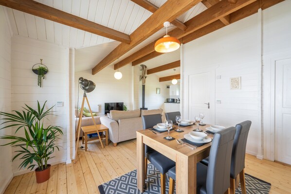 Unsere warmen und modernen Blockhäuser waren eine wahre Liebesarbeit. Unsere drei Blockhütten wurden von uns speziell für Familien, Paare und Gruppen von Freunden entworfen. Sie bieten ein modernes skandinavisches Ambiente mit offenen Wohnbereichen, einer komfortablen Sitzecke, einem Esstisch und einer gut ausgestatteten Küche. Der gemütliche Holzofen sorgt für eine warme und einladende Atmosphäre, während Sie durch die Tür gehen. Die großzügigen Schlafzimmer verfügen über bequeme Betten, in denen Sie nach einem langen Tag, an dem Sie die nahe gelegenen Strände und die Küste erkunden, eine fantastische Nachtruhe genießen können. Professionell gewaschene Betten sorgen für zusätzlichen Luxus und WLAN ist kostenlos und zuverlässig durch die Unterkunft, sodass Sie nichts vermissen, wenn Sie nicht da sind!