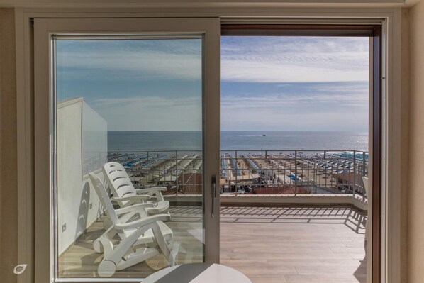 Luxurious and modern penthouse facing the sea with private solarium on the seafront of Lido di Camaiore with private parking space. The flat is on two levels.The flat opens with the bright living room where there is a comfortable doublebed sofa, dining a