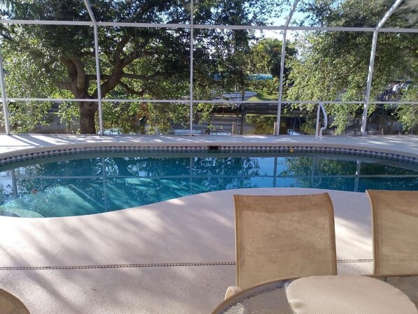 I stayed in this beautiful home for a 6-week vacation away from a very cold Ohio winter. It was more space than I really needed but it had a pool. Would be a great home for a family. The home was clean with a well-stocked kitchen with lots of utensils, dishes, pots and pans. The owner was great and almost immediately responded to any concerns I had. With that said, be aware that there is only one smaller TV in the house, which is located in the living room, the listing states that one of the bedrooms has a full-size bed but the pictures show 2 twins which is what it has. There is an issue with the pool. It is clean and I felt safe swimming in it but there are some stains on the walls and bottom which may turn off some people. Overall, a great place!
