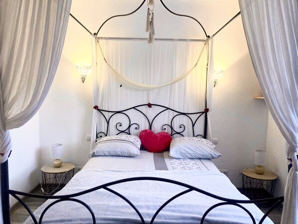 1 Lit 140/190, 1 Lit 160/200 , 2 Lits 90/190, et 1 lit d'appoint 80/190 pouvant être rajouté dans la chambre de votre choix