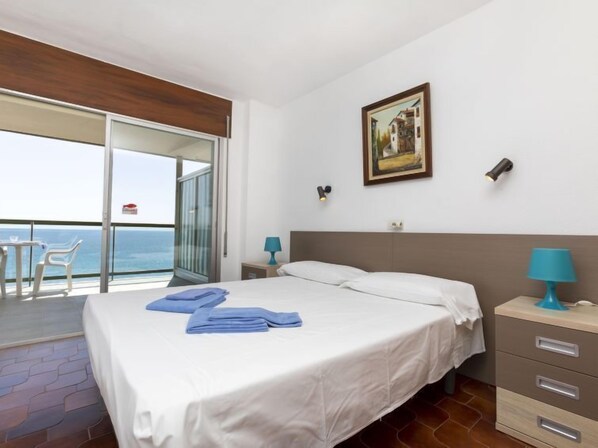 "Verd", 3-Zimmer-Wohnung 65 m2 im 5. Stock. Zweckmässig eingerichtet: Wohn-/Esszimmer mit Digital-TV. Ausgang zur Terrasse. 1 Zimmer mit 1 franz. Bett (150 cm, Länge 190 cm). Ausgang zur Terrasse. 1 Zimmer, ohne Fenster mit 1 x 2 Etagenbetten (90 cm, Länge 190 cm). Küche (Backofen, 4 Glaskeramikplatten, Toaster, Wasserkocher, Mikrowelle, elektrische Kaffeemaschine). Bad/Bidet/WC. Heizung. Grosse Terrasse. Terrassenmöbel. Herrliche Sicht auf das Meer. Zur Verfügung: Waschmaschine, Bügeleisen, Kinderhochstuhl, Babybett, Haartrockner. Bitte beachten: Nichtraucher-Unterkunft. TV nur ES. HUTG-021249 // Reg. Nr.: ESFCTU00001701700010798100000000000000000HUTG-0212495