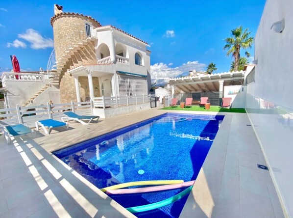 Das freistehende Ferienhaus "Villa Tiléa" (145m²) im typisch spanischen Stil wurde 2023/2024 komplett renoviert und bietet Platz für 8-10 Personen.