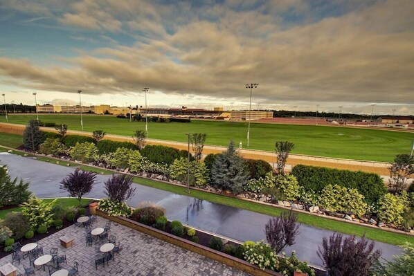 Staff was very helpful, friendly and professional. Room was extremely clean and large. We looked over the track, which was fun for watching the horses being exercised in the morning, but would not have been a clear enough view to watch the evening races. Our only disappointment with the hotel was the breakfast. The description on the website leads you to believe it is more than it is. It was the standard hotel breakfast fare with three so-so hot items. The food was adequate, but no more than that. All in all, an excellent choice of hotel.