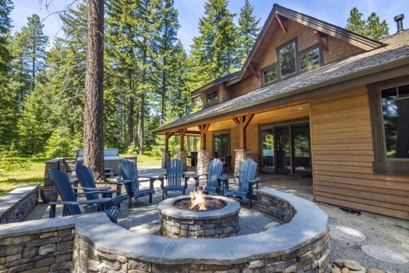 Dieses Haus verfügt über überdachte Terrassen mit viel Privatsphäre, so dass Sie die Tierwelt von Ihrer Veranda aus beobachten können. Oder grillen und essen Sie auf dem Esstisch mit 6 Sitzplätzen. 6 weitere Personen Ihrer Gruppe können Marshmallows an der Feuerstelle braten, und Sie können alle vom privaten Whirlpool aus die Sterne beobachten. Und natürlich gibt es Liegestühle für diejenigen, die nachmittags ein Nickerchen machen möchten.