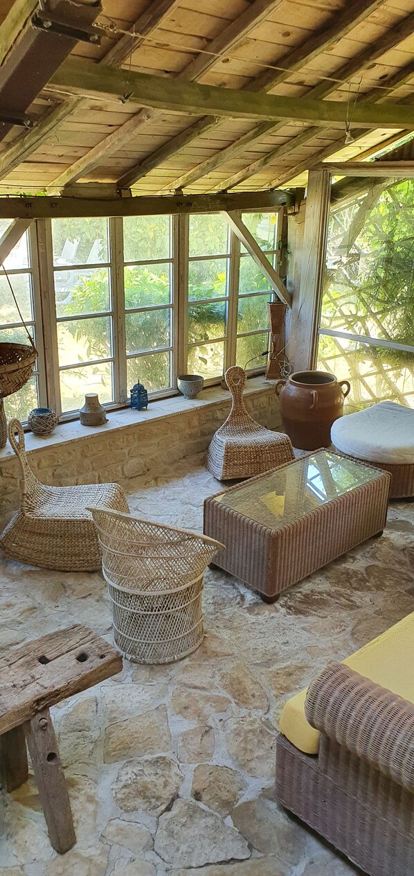 Nous avons pu profiter de l'extérieur car il faisait un temps magnifique et de la cuisine d'été qui est une pièce agréable à vivre même à cette saison. La maison était très ancienne et avec un confort rustique. Est ce parce que c'était le début de saison mais la maison n'était pas au niveau de propreté attendu.