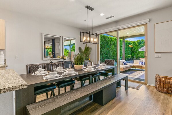 Alle Zimmer bei Ultimate Coachella Valley Oasis: 7BR Private Resort, Spa & Mini-Golf bestechen durch Annehmlichkeiten wie Privatpools und eine Klimaanlage sowie Ausstattungsmerkmale wie Schreibtischstühle und Esstische.