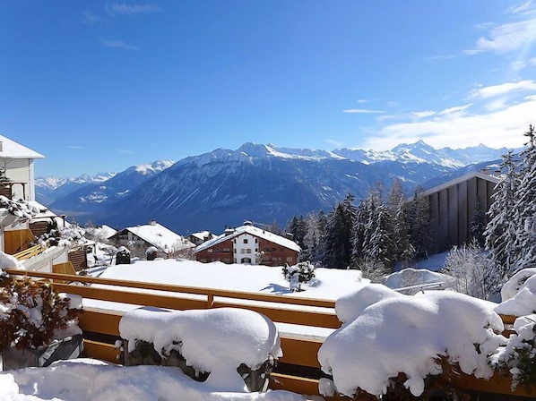 "Terrasse Des Alpes 814", 2-Zimmer-Wohnung 53 m2 im 3. Stock. Wohn-/Esszimmer mit 1 Doppeldiwanbett (140 cm, Länge 190 cm), Kabel-TV (Flachbildschirm), Radio, CD und DVD. Ausgang zur Terrasse. 1 Zimmer mit 1 Doppelbett (2 x 80 cm, Länge 200 cm). Ausgang zur Terrasse. Küche (4 Kochplatten, Backofen, Geschirrspüler, Toaster, Wasserkocher, Mikrowelle, elektrische Kaffeemaschine, Kapseln für die Kaffeemaschine (Nespresso) extra, Racletteofen, Fondue Set (Käse)) mit Durchreiche. Bad/WC. Terrasse 17 m2, Südlage. Terrassenmöbel, Liegestühle (1). Schöne Sicht auf die Berge und das Tal. Zur Verfügung: Bügeleisen, Haartrockner. Internet (Wireless LAN, gratis). Garage Nr. 72, Höhe 200 cm, Breite 230 cm. Bitte beachten: Nichtraucher-Unterkunft. Maximal 1 Haustier/Hund erlaubt.