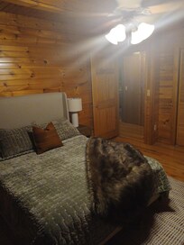 Water's Edge Cozy 2-bedroom cabin. Wooded setting, WiFi, Pond & Hot Tub