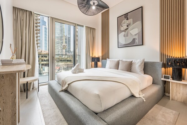 City Vibe 1BR with Outdoor Space, Walk to Burj Khalifa & Dubai Mall