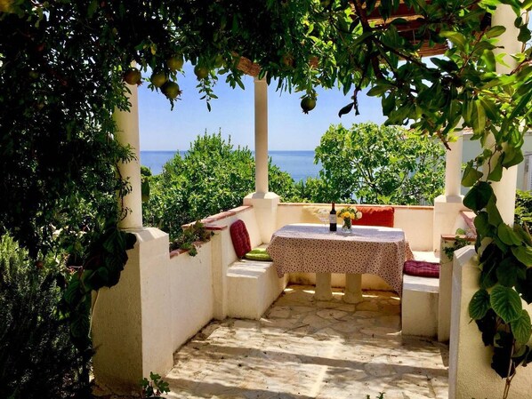 Diese einzigartige, große Gartenwohnung mit 1 Schlafzimmer befindet sich im Erdgeschoss des Hauses der Eigentümer (Australier) und liegt inmitten eines wunderschönen Gartens mit 12 alten Olivenbäumen und Granatapfelbäumen. Das Haus befindet sich in einer ruhigen Fußgängerzone, während das Gartenapartment über einen eigenen Eingang verfügt und ausschließlich einen privaten Essbereich im Freien mit Meerblick nutzt. Es ist 5 bis 10 Minuten zu Fuß von der Altstadt, den Stränden, Cafés, Bars, Restaurants, Geschäften, der Apotheke, dem medizinischen Zentrum und den öffentlichen Verkehrsmitteln entfernt.