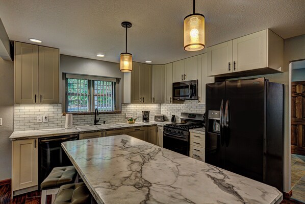 o 3 Schlafzimmer auf der unteren Ebene verfügen über 2 Queen-Betten, 2 Einzelbetten, Queen-Etagenbetten und 2 Twin-Etagenbetten