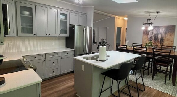 This newly-renovated home is just a 6-minute walk from the Six Mile Lake beach!