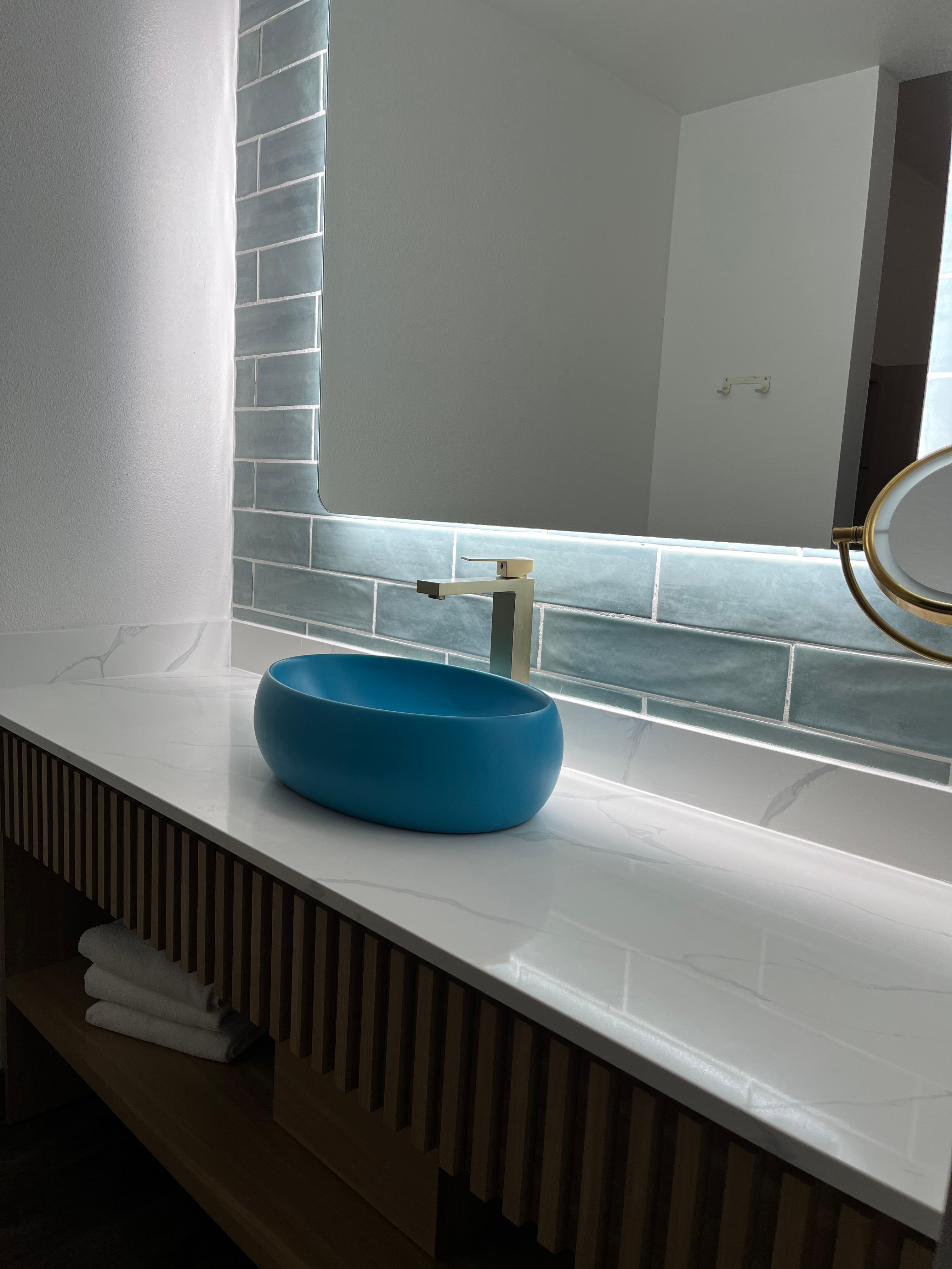 The newly remodeled room was great. We had an issue with our first home and that’s when they upgraded our room. If you go to this place, please ask for the remodeled room it’s worth the price.