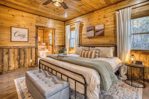 We had a great stay in the cabin. Six of us were on this trip and we all loved the comfort of Birdie Blue. The beds were all soft, the blankets and pillows were cozy and everyone slept well. The outside swing is the perfect start and ending to your day. The kitchen is set up with everything that you need. We saw deer at the end of the driveway one morning and a daily red cardinal visit. The host were very responsive and appreciate their guidebook they send you upon booking. If you want a fun little free place to visit go to Horseshoe bend park in McCaysville. During the week, hardly anyone was there and it was a great place to sit and relax while our girls played in the water. Take a lunch and enjoy the views and river and it’s only a short drive from the cabin. I can’t imagine how pretty Birdie Blue would be in the fall with the trees that surround the cabin!