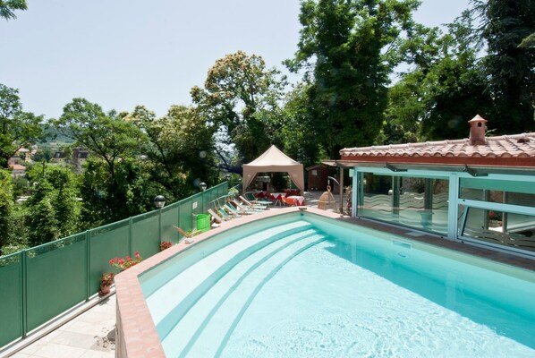 Der saisonal geöffnete Pool ist von Juni bis August geöffnet