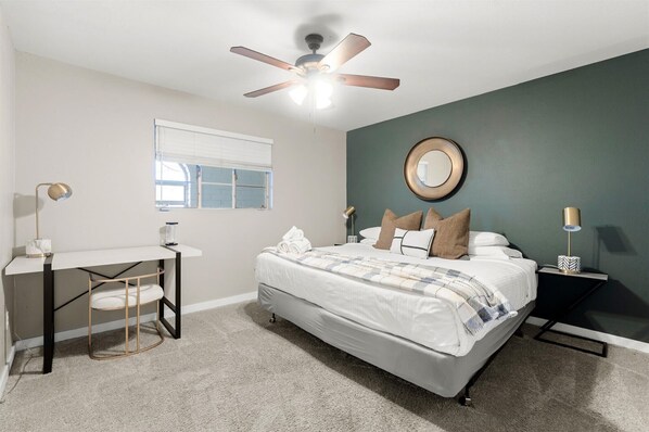 Zur Badausstattung gehört Folgendes: Duschen. Dir stehen Arbeitsbereiche und Schreibtische zur Verfügung.