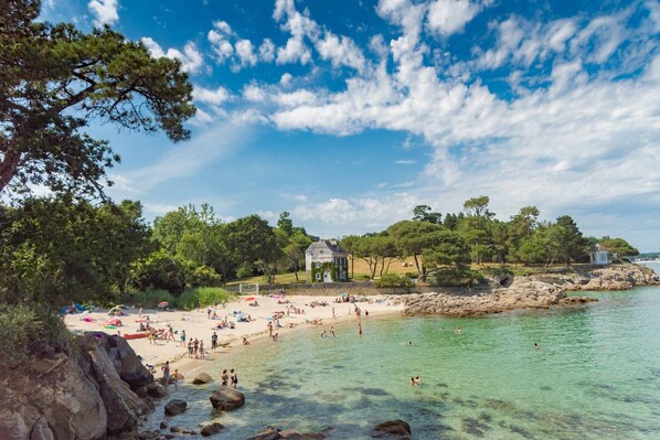 Dank der ausgezeichneten Lage am Strand ist dieses Apartment zu Fuß nur 15 Minuten entfernt von: Strand von Fouesnant und Golf von Biskaya. Ebenfalls in einem Umkreis von 2 km: Strand von Kerveltrec und Strand von Kermyl.