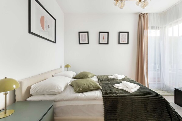 Alle Zimmer bei Letnicka 10 Gdańsk | Luxuswohnung | Parkplatz | Fitnessraum | Balkon bieten Extras wie eine Klimaanlage sowie Ausstattungsmerkmale wie Arbeitsbereiche und Esstische.