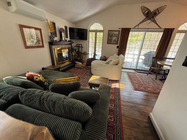 Riverside cottage w/deck, King Bed, BBQ & fireplace