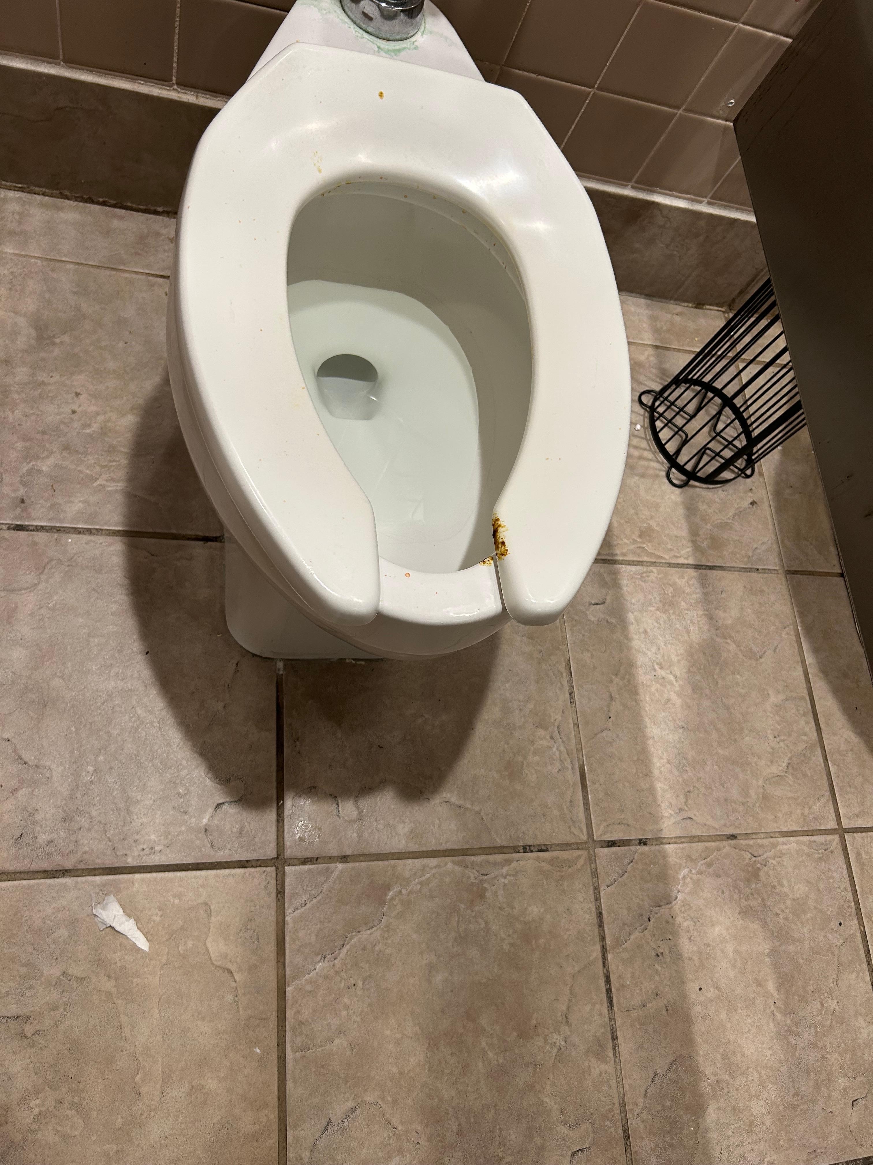The staff were friendly and quick. The room was okay. The smoke detector was missing from the wall (the mounting plate was still there). The thermostat was not attached fully to the wall and the toilet seat was not screwed down on one side. The overall cleanliness of the room was okay, but the hotel overall could use some updates and repairs.