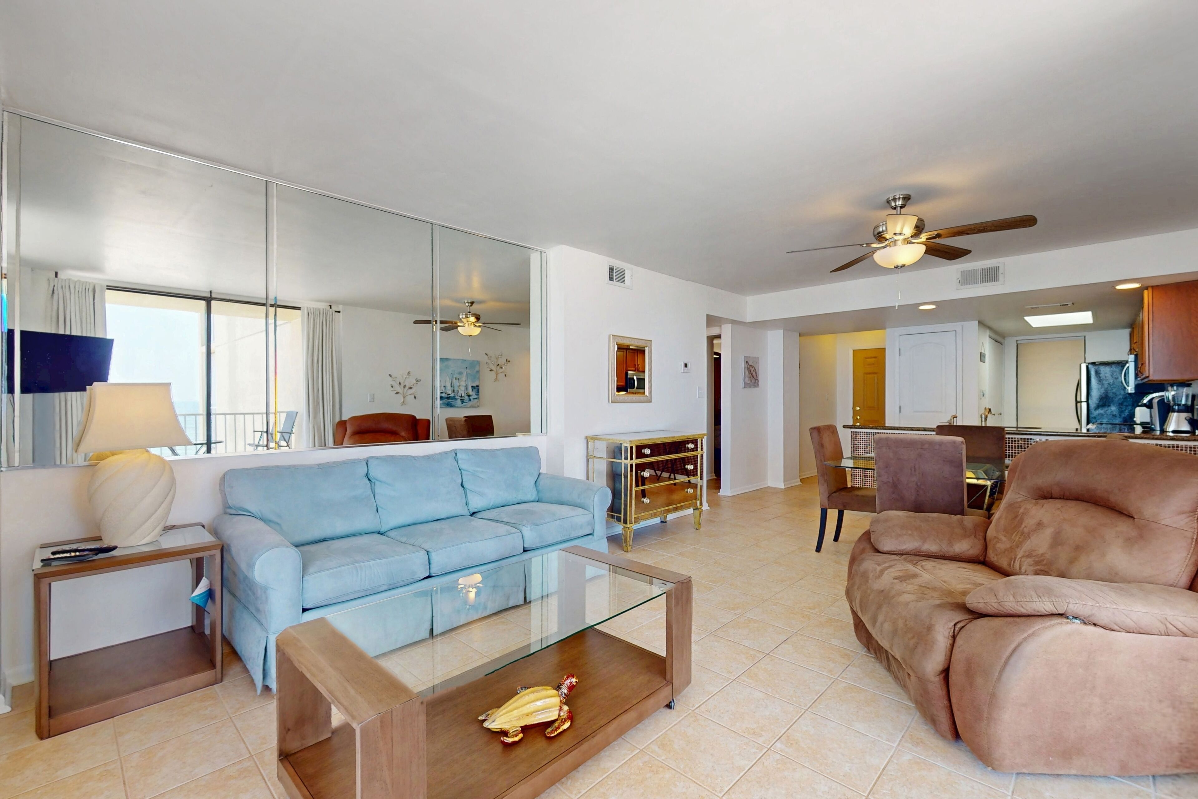 Beachfront condo with pool, private balcony, and washer and dryer