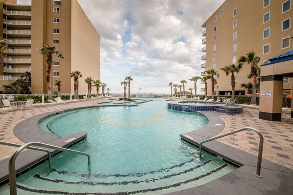Crystal Tower est un nouveau bâtiment fantastique à Gulf Shores - il est unique en son genre avec la seule piscine de style complexe hôtelier + la rivière paresseuse de l'île. Le Beach Club est directement sur le golfe du Mexique avec une passerelle climatisée y menant directement depuis le bâtiment. Appuyez sur un bouton de l'ascenseur, faites une petite promenade et prenez votre alto - le choix est difficile - la superbe piscine du complexe ou le sable blanc comme sable à la plage?