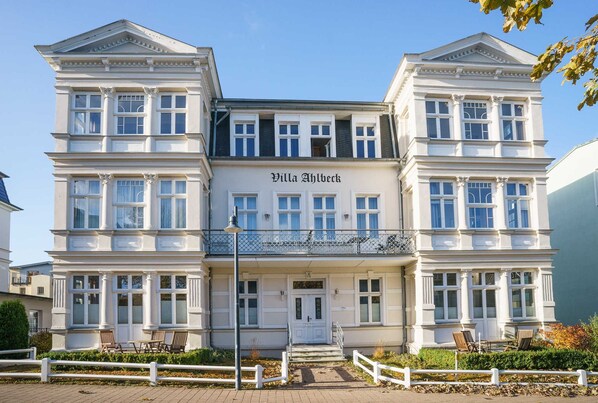 Freuen Sie sich auf komfortable Ferienwohnungen in einer stilvoll restaurierten Villa, ergänzt durch einen angeschlossenen Neubau. Im charmanten Flair der historischen Bäderarchitektur finden Sie alle Annehmlichkeiten einer modernen Unterkunft, die keine Wünsche offen lässt.