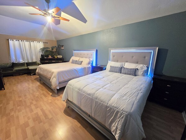 I booked this for our work group of 8 people for 5 days. It was close to NRG stadium where we were working. The furniture could use some updating, none of the dresser drawers would stay shut, and others were so hard to enough get open. Drawers had all kind of stuff in them. Condoms in two rooms. Glad with didn’t have kids with us. Stand up mirror in one bedroom, the leg was broke and fell hitting one of us. The master bedroom had no lamps and was very dark, we had to open blinds to even see. The shower in master bath was AWFUL! Nothing we did made the sprayer work right. It sprayed everywhere, getting floor and rug all wet. If you turn it down it was a fine mist. We travel a lot and it was one of the worst ever used, It should have been replaced a long time ago. Really Bad! I didn’t realize in a house this size that there was No washer and dryer, which they didn’t list one, but it did list towels, and we were staying 5 days. There was very few towels or wash clothes. No hand towel in half bath. We had to go to Walmart and buy towels because there wasn’t enough and no way to wash them. It did list paper towels, there was none or napkins, had to go buy too. There wasn’t any dish towels in kitchen either, so paper towels were needed. The up bath had whole wall with different colors of paint.Weird looking, like someone tried to touch up with wrong color of paint. House stated no smoking, which was fine but back porch had full pack of cigarettes and two lighters sitting on table.