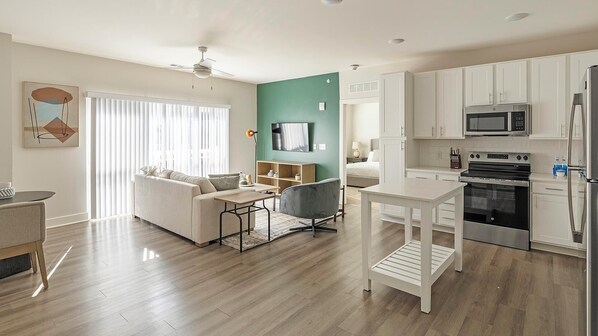 Dieses Apartment besitzt klimatisierte Zimmer, die folgende Ausstattung bieten: Bügeleisen/Bügelbretter. Zur Ausstattung gehören Schreibtische und Esstische. Smart-TVs stehen in den Zimmern zur Verfügung. Zur Ausstattung der Küchen gehören Kühlschrank.