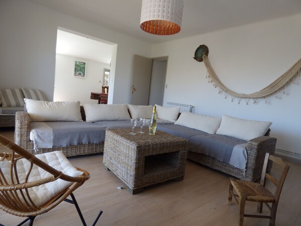 La proximité de la plage ne permet pas de compenser les problèmes de cette maison trop nombreux pour être tous nommés ici (nb limité de caractères) : grande saleté (pieds noirs au bout de 30 minutes, araignées et leurs toiles à gogo, vitres sales à ne pas laisser passer la lumière), cuisine est au 1er étage, à l’opposé de la terrasse…terrasse dont l’accès par l’intérieur se fait via la chambre des enfants (super dès qu’ils dorment !), multiples dangers (prises qui sortent du mur, tringles à rideau non fixées qui vous tombent dessus quand vous tentez de tirer les rideaux), matériel de cuisine de fortune (1 quart de planche en bois pour couper les légumes, unique économe sans manche), draps et serviettes rapés au point de penser qu’ils sont ensablés (en fait bouloches, piqués de moisi et sentant le croupi), odeur de moisi dans les chambres (qui empire avec la chaleur qui monte), vétusté de la maison (murs qui partent en miettes, meubles dont les portes tombent, plinthes qui se décrochent), « pack fun » qui l’est si vous aimez regonfler ou réparer les pneus crevés ou le paddle, douche écossaise si vous avez le malheur d’utiliser de l’eau à 2 endroits différents, pas de plancha en plus d’un machine qui tourne ou c’est le disjoncte assuré, et on en passe… Bref, passez votre chemin !