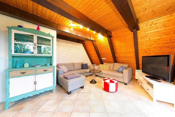 Einteilung: Parterre: (Wohnzimmer) In der 1. Etage: (Schlafzimmer(Doppelbett), Schlafzimmer(3x Einzelbett)) Eingangshalle, Küche, open sleeping areas(Einzelbett), Badezimmer(Dusche, Toilette), TV, Herd, Radio, Wasserkocher, Toaster, Kaffeemaschine, Kühlschrank, Heizung, Terrasse, Parkplatz, Babybett (kostenlos)