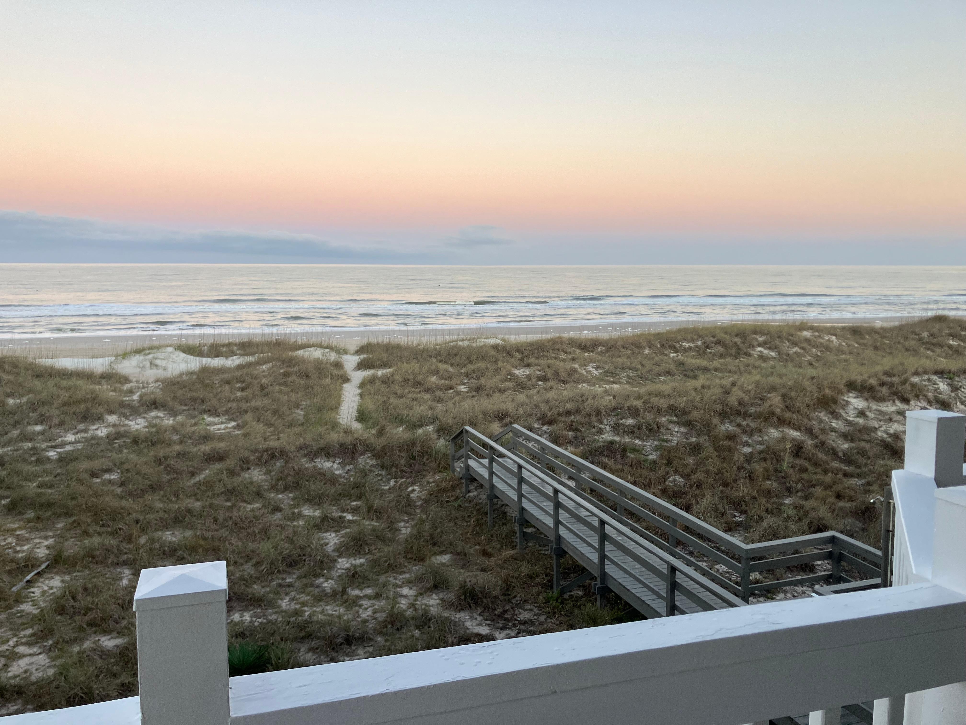 This was an unexpected last minute decision to visit the east coast of Florida after staying in Clearwater area. God blessed our decision with an incredible condo in a perfect location right on the beach and close to many superb restaurants and shopping. The condo had every amenity, was very clean and just steps to the Atlantic Ocean. I’ve never stayed anywhere where you can see the sun rise straight out the back door over the water. We loved it and are planning to make this a regular go to for our travels. About the accommodations, the bed was very comfortable, the walk in shower was great, the kitchen had a coffee maker and a keurig Machine, all the plates, bowls, cups etc that you would need. We thank God for this place and will be back.