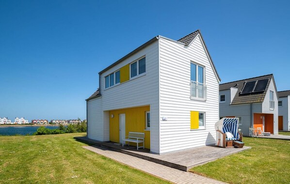 Der in hellem Holz gehaltene Wohn- und Essbereich im Erdgeschoss führt auf eine wunderschöne, großzügige Panoramaterrasse und den direkt am Wasser gelegenen Garten. Beim Sonnenbaden, Barbecue, oder entspannten Lesen lässt sich der atemberaubende Blick aufs Wasser und das Hafenkino der vorbeifahrenden Segel- und Sportboote genießen. Maritimer Flair ist garantiert. Und bei richtigem Ostseewetter sorgt ein gemütlicher Kaminabend oder das Home Entertainment Programm auf dem einladenden Sofa für den richtigen Ausgleich.
