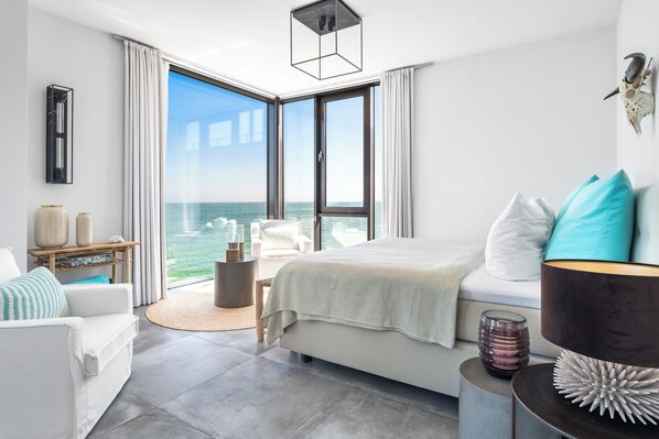Drei Badezimmer, inklusive Sauna, und ein gemütlicher Kamin schaffen wohlige Wärme und Entspannung zu jeder Jahreszeit. Fußbodenheizung trägt zum Komfort bei. Bodentiefe Panoramafenster tauchen die Räume in Licht und bieten spektakuläre Ausblicke auf die Ostsee.