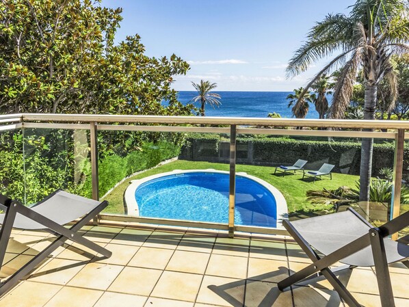 Cozy little house with private pool and security fence for children.