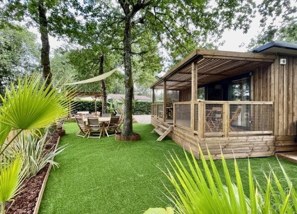 Chalet 'Charmant Gîte nahe Arcachon' mit privater Terrasse, Garten & Klimaanlage