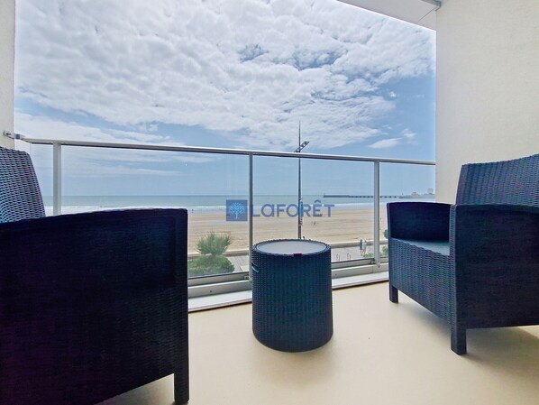 Schönes Apartment mit einem Schlafzimmer und großem Balkon mit Meerblick – Blick auf die gesamte Baie des Sables. Dieses Apartment im 2. Stock verfügt über einen Aufzug. Es besteht aus einem Eingangsbereich/Flur, einem Wohnzimmer (Doppelschlafcouch, Fernseher), einer Küche (Mikrowelle/Grill, Kühlschrank und Elektroherd mit zwei Kochplatten), einem Schlafzimmer mit Queensize-Bett, einem Badezimmer (ebenerdige Dusche, Waschbecken und Waschmaschine) und einem separaten WC. Direkter Zugang zum Strand und zur Strandpromenade. Geschäfte, der Hafen und Radwege sind 100 m entfernt. Wanderwege im Wald von Olonne sind 3 km entfernt.