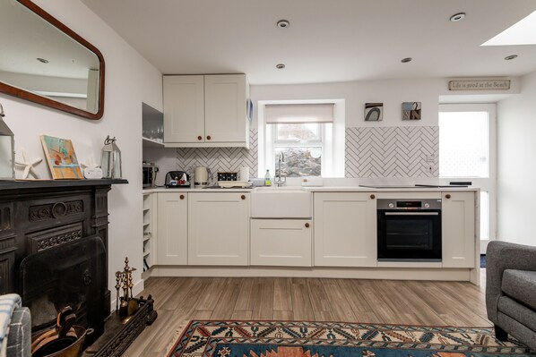 Dieses Ferienhaus in Leven bietet eine Küche und einen Kamin