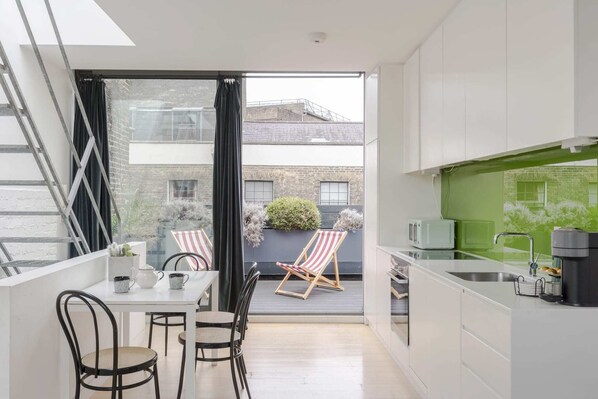 - Modern kitchen with everything possible you would need for a short stay.